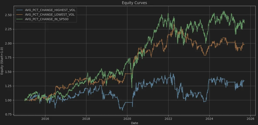 That’s really interesting! In the tech world, while SP_500 stocks usually do quite well, it’s so fascinating to see that the stocks with the lowest volatility often perform better than those with higher volatility. I believe this might be because technology stock fundamentals change so rapidly, making a stock swing from high to low volatility in just a few months. It seems like sticking to the middle range might be the safest and smartest bet here ;).